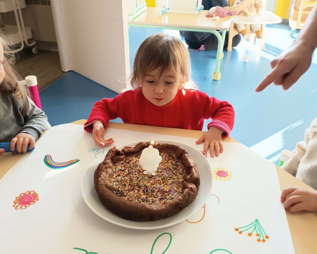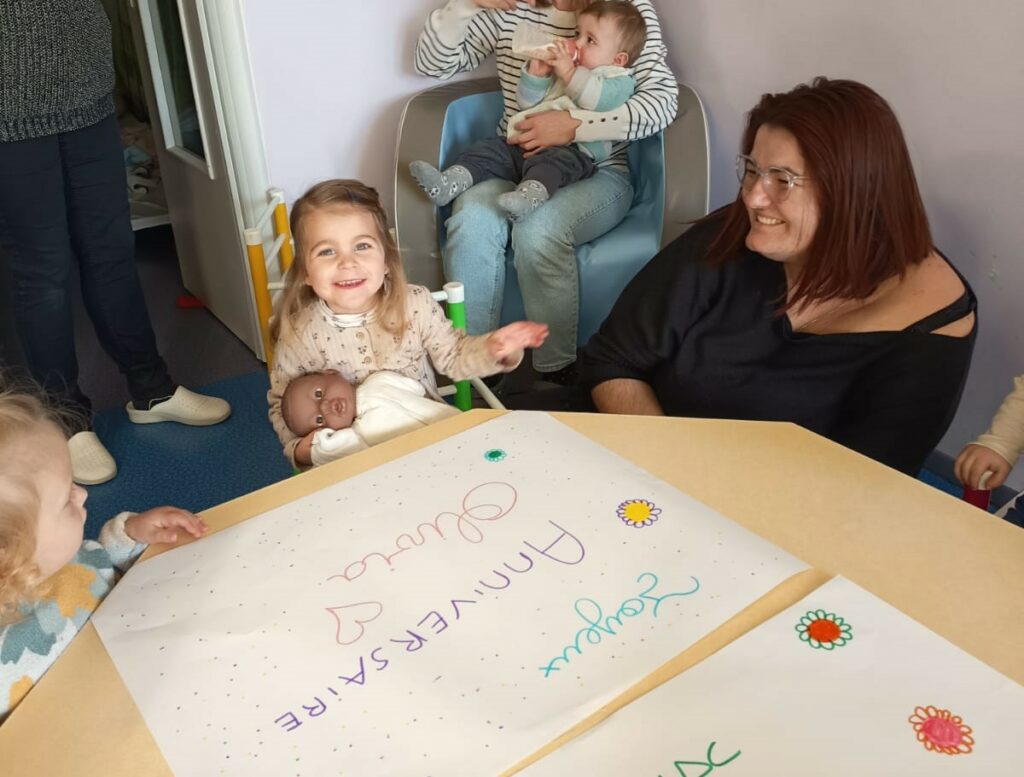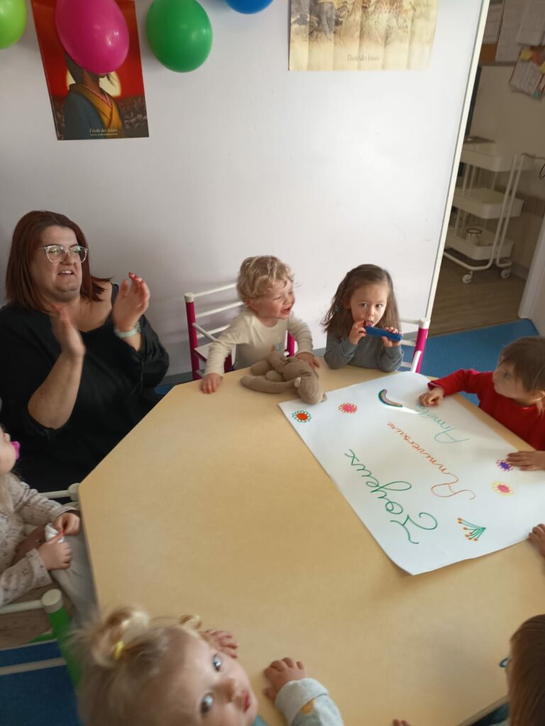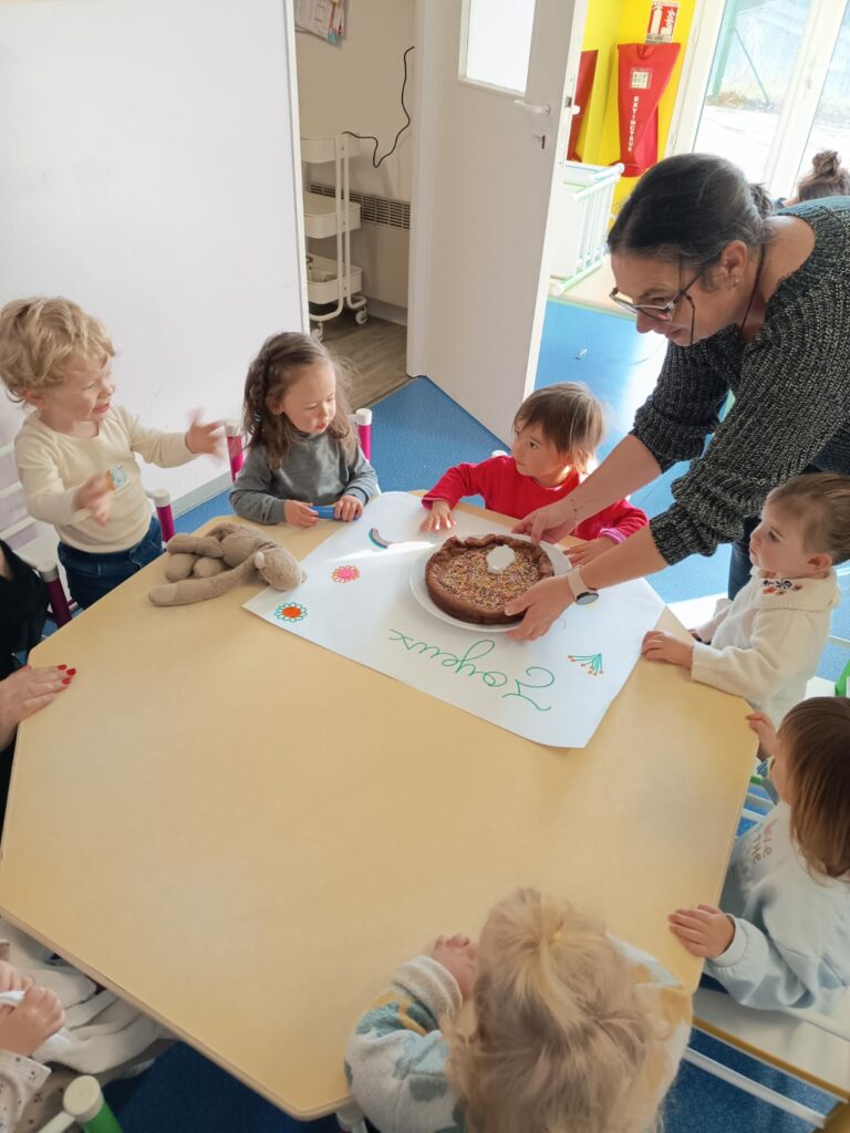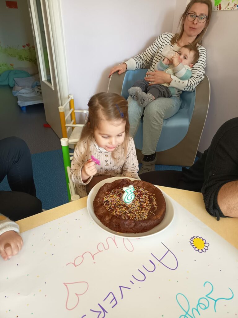 Le jeudi 15 janvier nous avons célébré l’anniversaire d’Amélie, qui a eu 2 ans et d’Olivia qui a eu 3 ans. Accompagnés par Romane, quelques enfants ont préparé un gâteau, qu’ils ont pu déguster au goûter dans une ambiance festive et musicale !