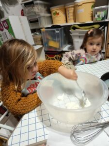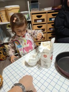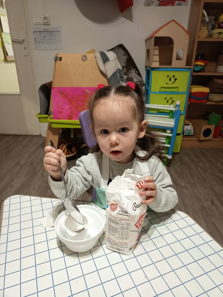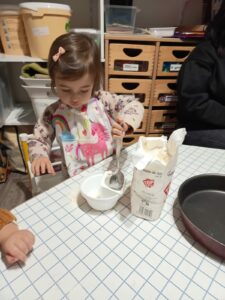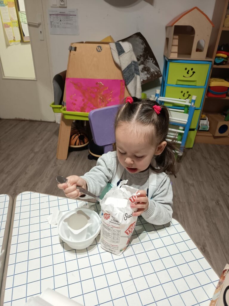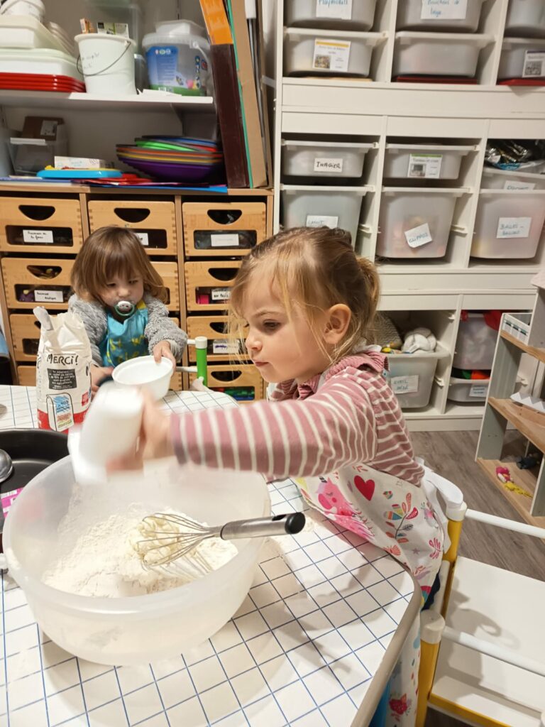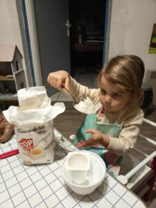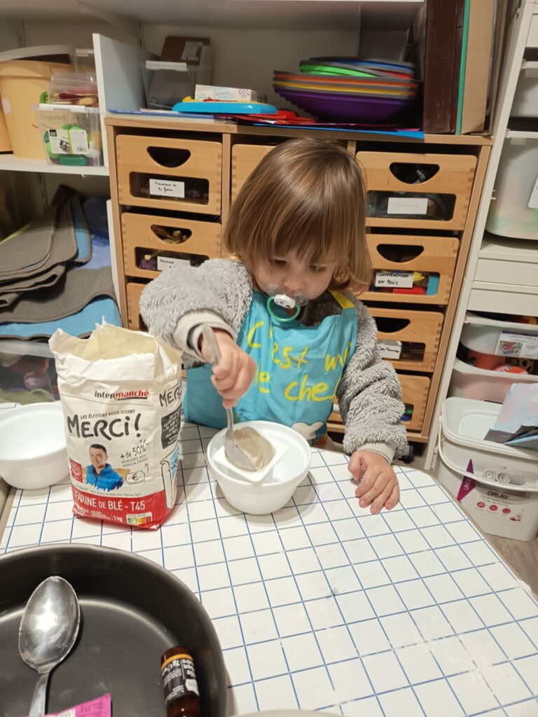 Le 12 décembre dernier, quelques enfants du groupe des grands, accompagnés d’Adeline, ont préparé un quatre-quarts à la crèche, que nous avons apporté à la fête de Noël le lendemain 🙂