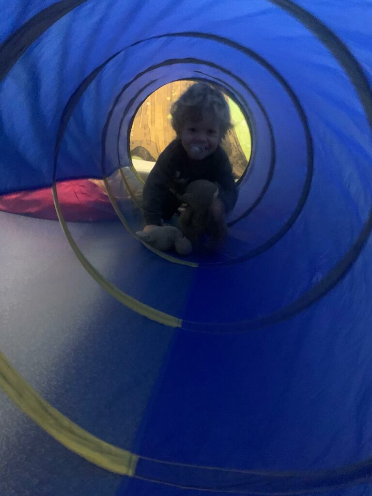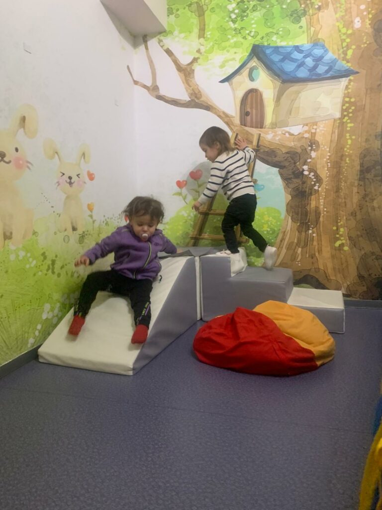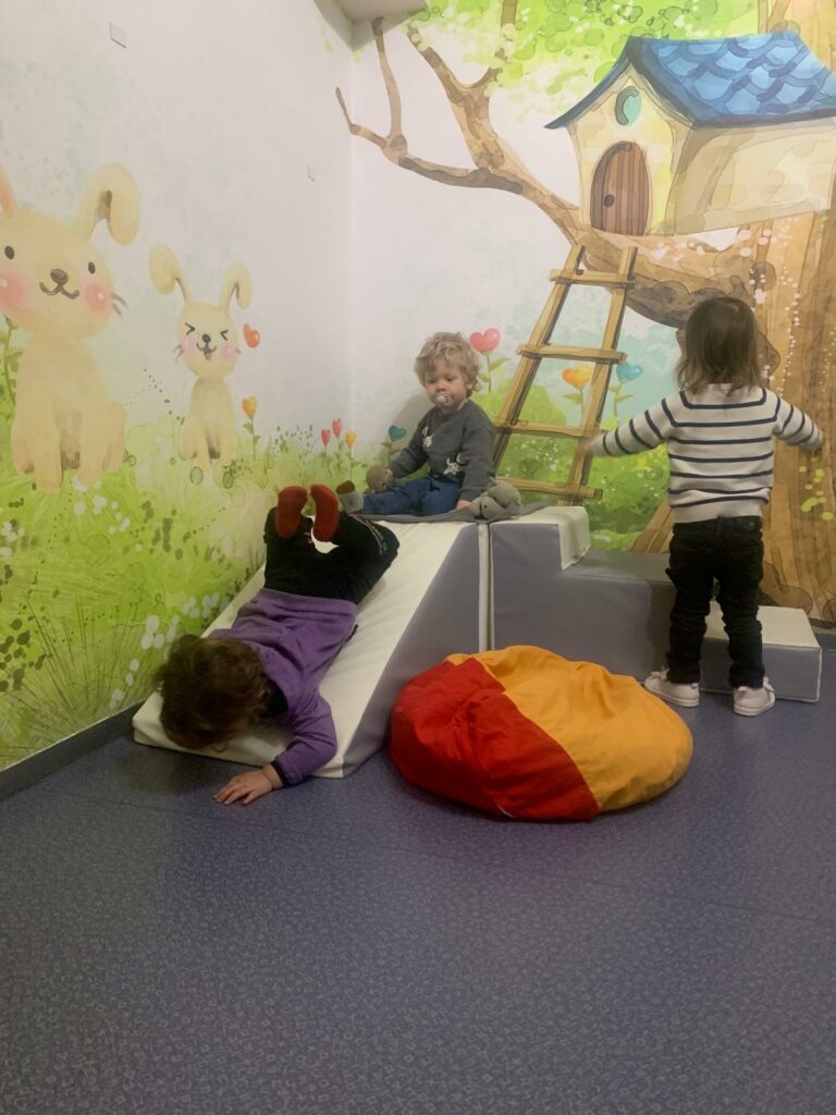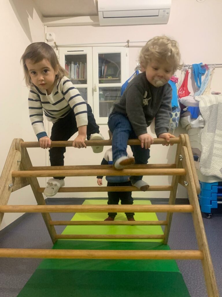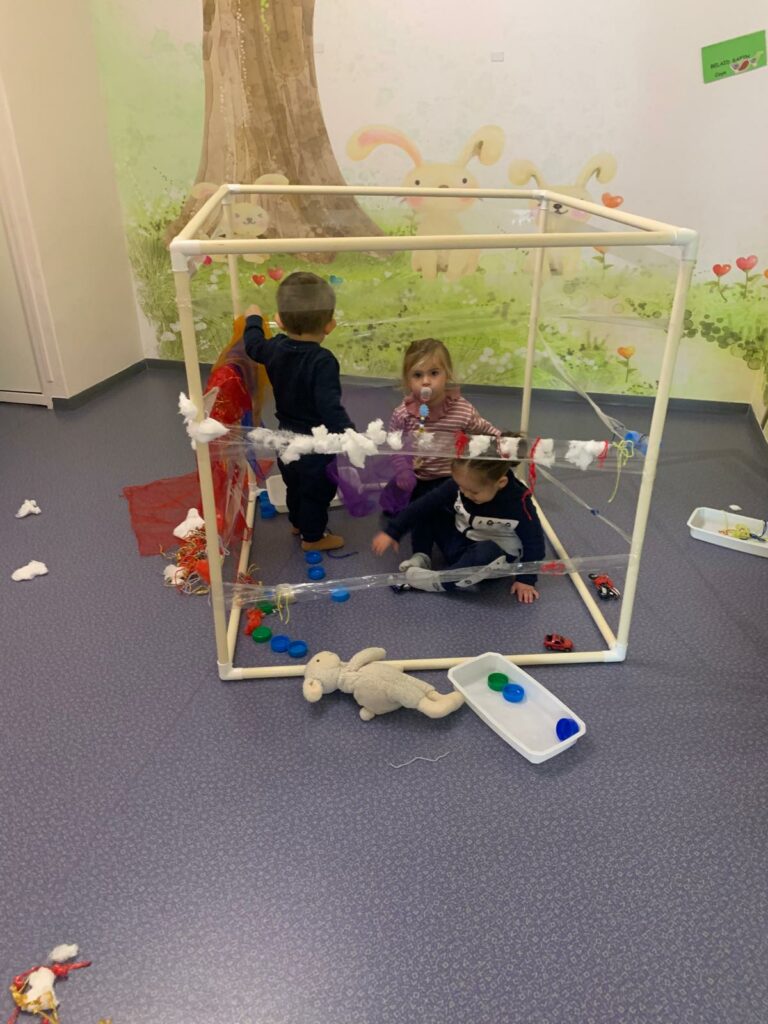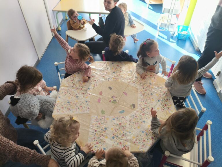 Voilà comment se dépenser malgré le mauvais temps… Dans un atelier motricité, on grimpe, on saute, on glisse et on danse ! Les enfants explorent et développent leur habileté motrice tout en s’amusant.