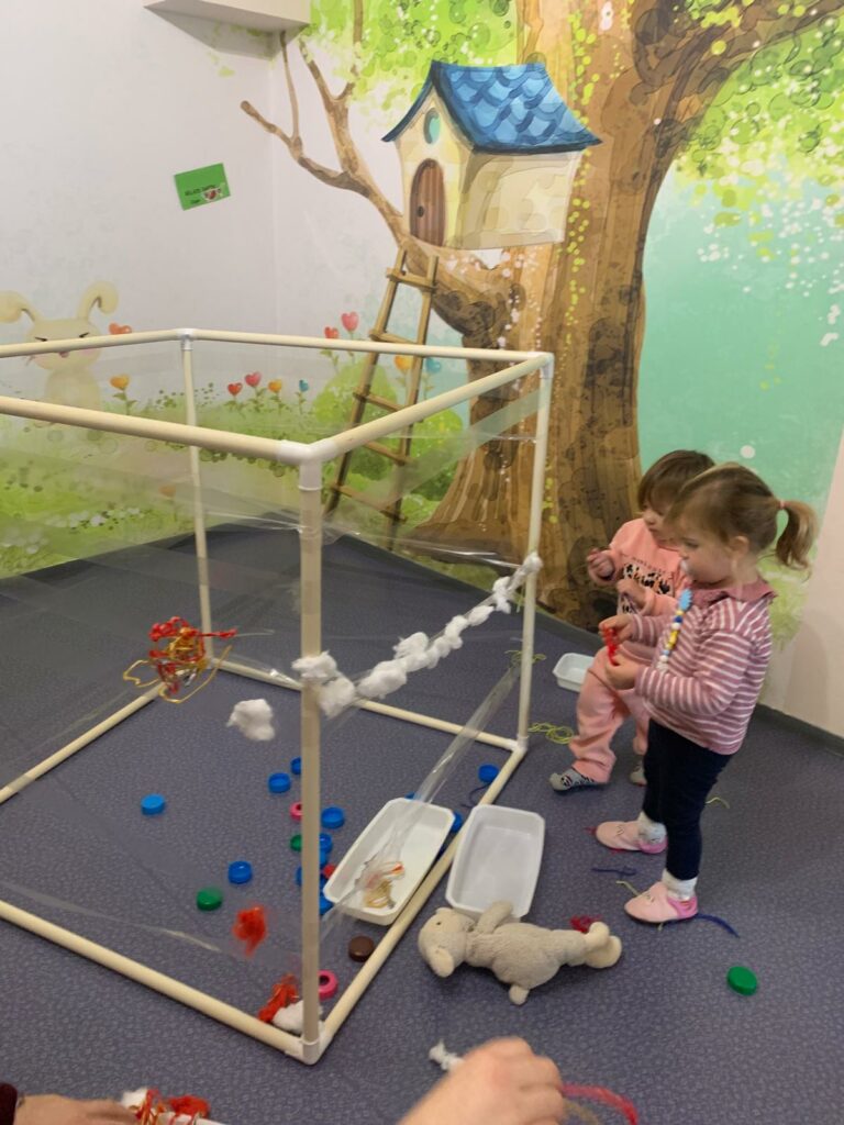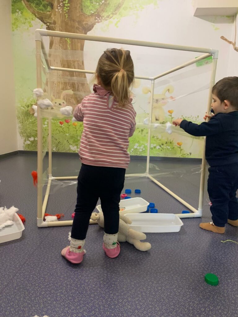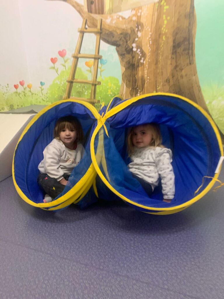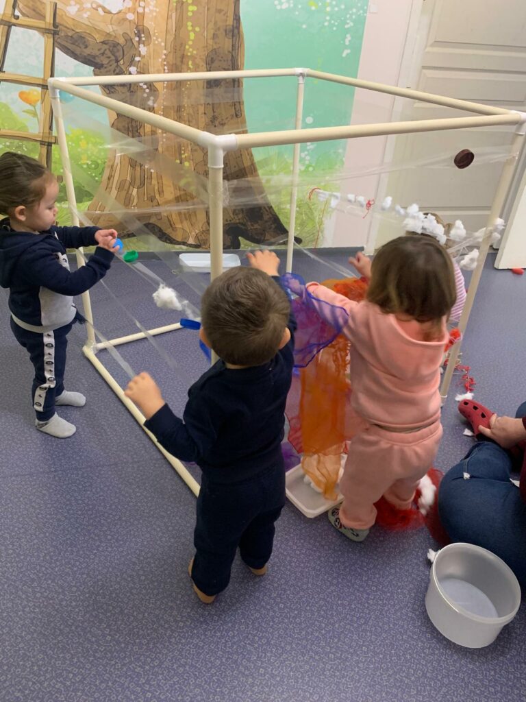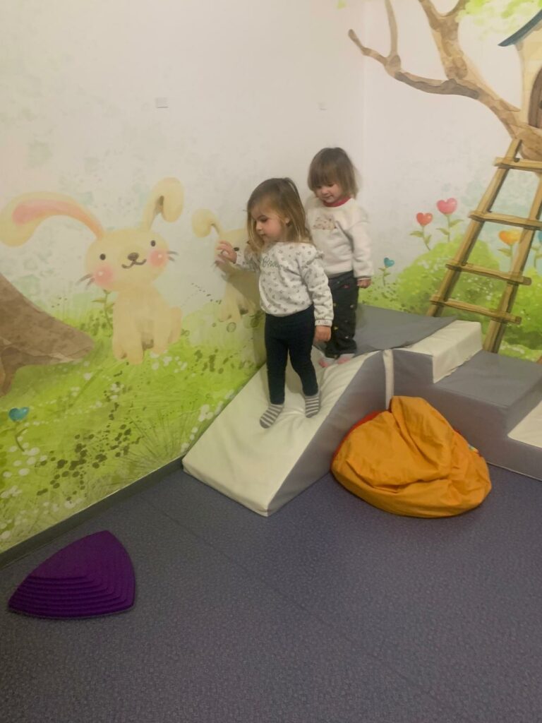 Voilà comment se dépenser malgré le mauvais temps… Dans un atelier motricité, on grimpe, on saute, on glisse et on danse ! Les enfants explorent et développent leur habileté motrice tout en s’amusant.