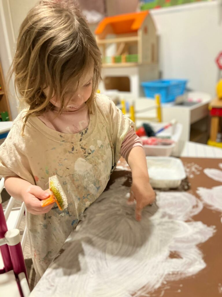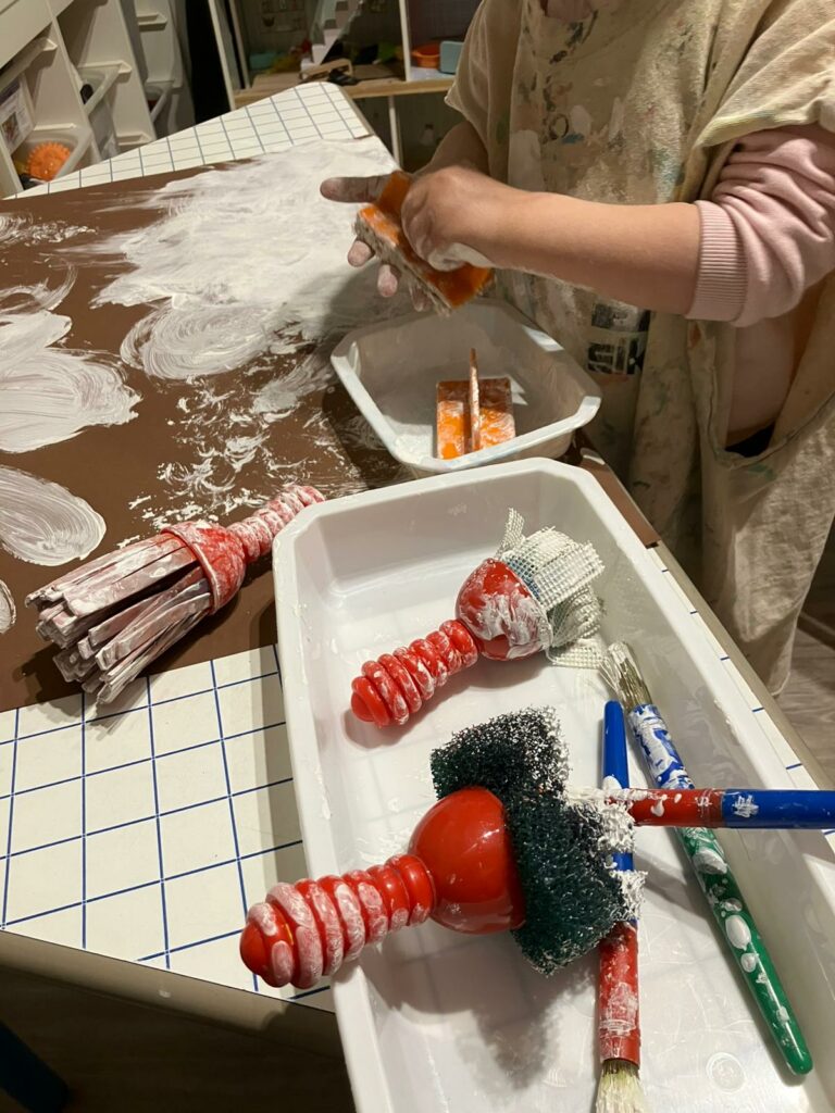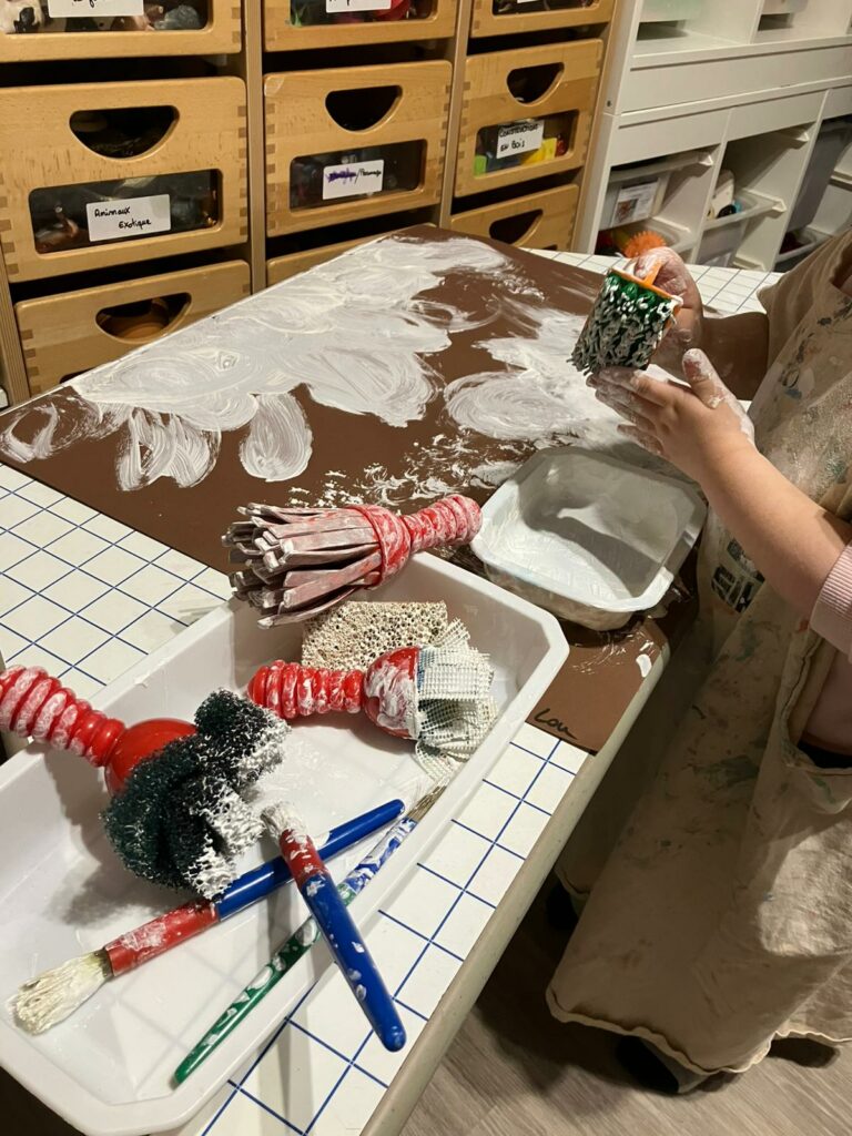 • Un atelier peinture blanche à explorer avec différents outils.