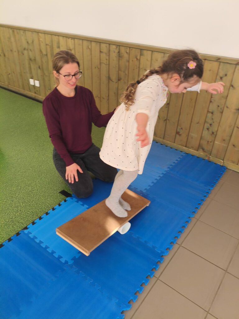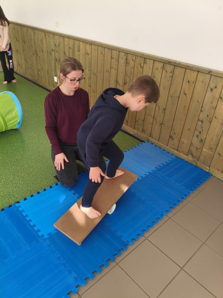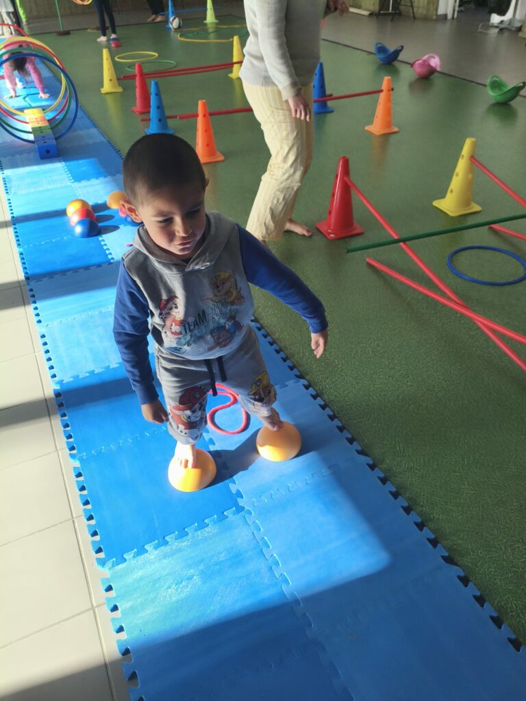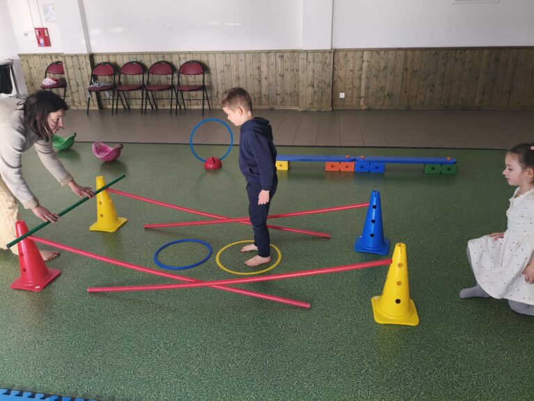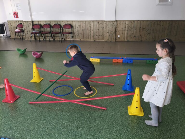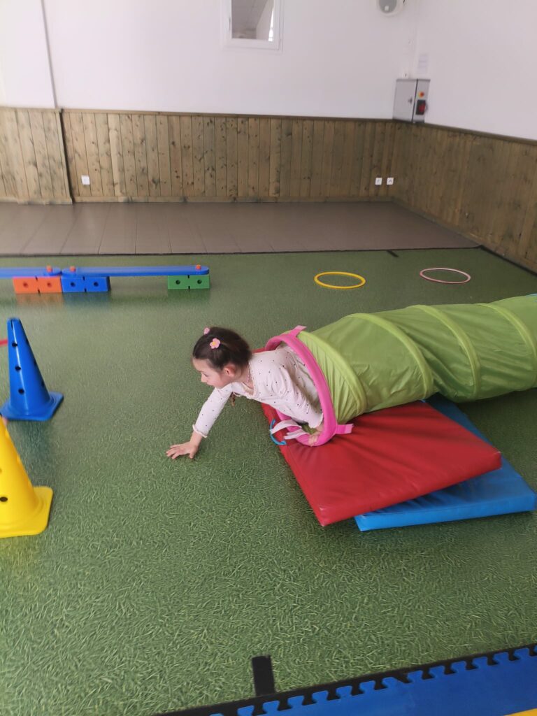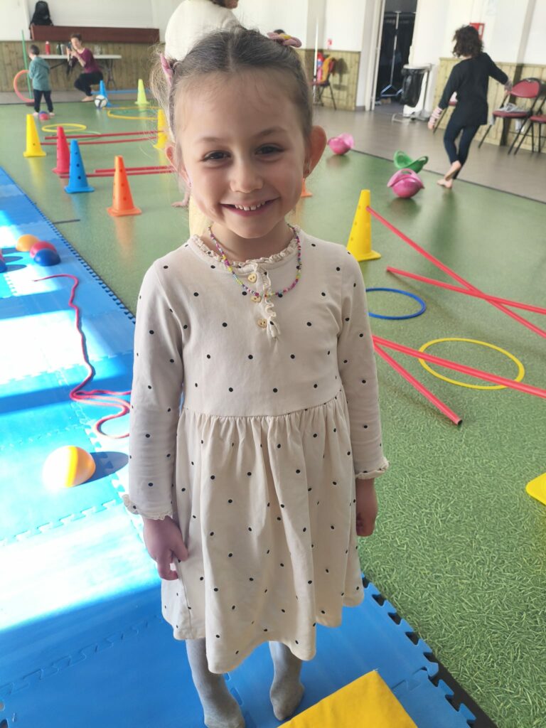 Lise et Cassandra, aidées des enfants, avaient préparé un parcours de motricité géant dans la salle des fêtes. Les enfants ont pu découvrir plein de nouvelles activités motrices, comme par exemple le “rolla bolla”, planche posée sur un rouleau, sur laquelle on doit tenir en équilibre.