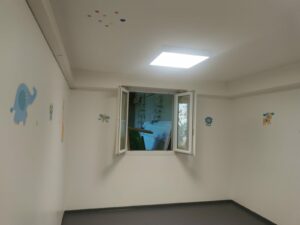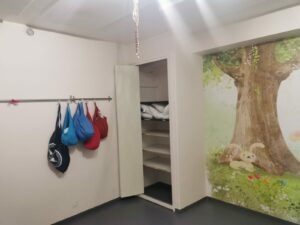 Quelques nouveautés, pendant les vacances, l’entreprise Reno Verdon a réalisé la mise au propre des deux dortoirs avec l’habillage du conduit de la VMC. Le dortoir des grands a été repeint et un nouveau papier-peint a été posé.